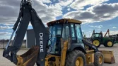 Equipped for versatility, this 310SJ features a hydraulic quick coupler loader with a 92″ bucket and bolt-on cutting edge, along with an extendable stick backhoe and 24″ bucket with weld-on cutting edge and five teeth. The machine rides on 12.5/80R18 front tires and 19.5L-24 rear tires, providing durability and stability for tough working conditions.